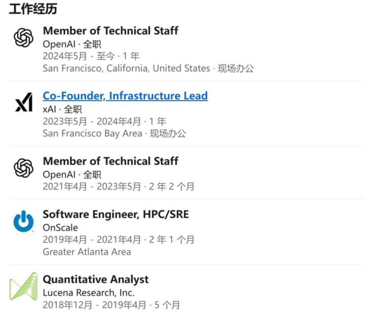 TimShi是OpenAI的早期成员之一,据其LinkedIn资料,他于2017年在OpenAI工作一年,专注于安全的AGI建设。