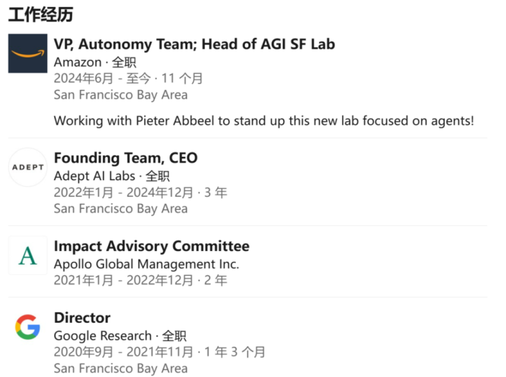 DavidLuan曾担任OpenAI的工程副总裁(VPofEngineering),于2020年离职,随后经历了在谷歌的短暂工作后,于2021年共同创办了AdeptAILabs,一家开发面向办公人员的AI工具的初创公司。