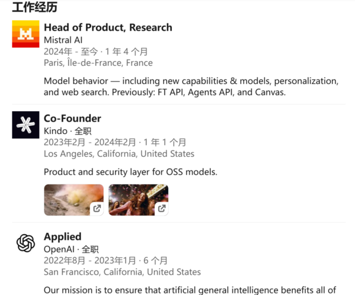 另据LinkedIn个人资料显示,MargaretJennings于2024年离开了KindoAI,前往法国AI初创公司Mistral担任产品和研究主管。